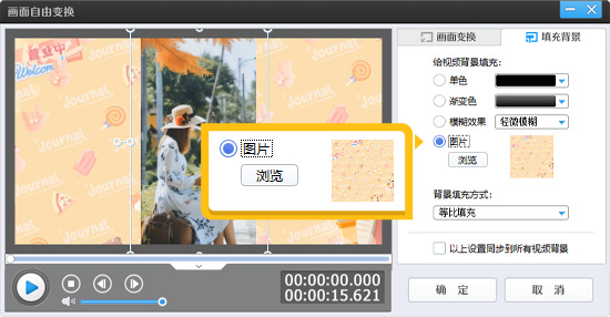 其一,利用内置的丰富背景图片功能一键替换黑边。在软件主界面的左下方,找到并点击“画面自由变换”选项。进入变换框后,选择“填充背景”功能,随后即可导入所需图片。爱剪辑的图片主题丰富多样,涵盖旅行、Vlog、政务宣传、校园、网课、古风等多种类型。选择合适的图片后,视频左右的黑边瞬间就被替换成漂亮的背景画面。