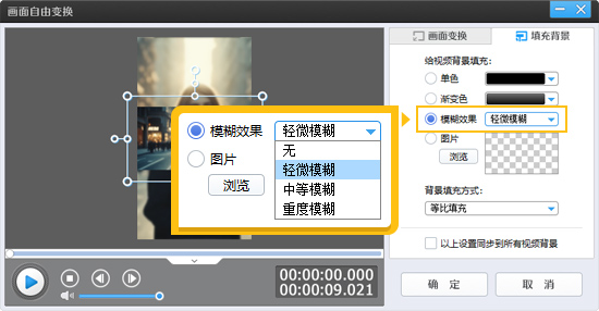 视频导入完成后,点击主界面左下角的“画面自由变换”功能。此时会弹出一个设置框,在框内选择“填充背景”选项,随后就能看到“模糊效果”的设置区域。在这里,爱剪辑提供了“轻微模糊”、“中度模糊”和“重度模糊”三种不同程度的模糊效果供用户选择。用户可根据视频的具体需求和想要呈现的视觉效果,选择合适的模糊程度。例如,在制作一个旅游记录视频时,若想让视频整体有一种朦胧的美感,可选择“轻微模糊”;如果是为了突出视频中的人物主体,将背景进行模糊处理,“中度模糊”可能会是更合适的选择。