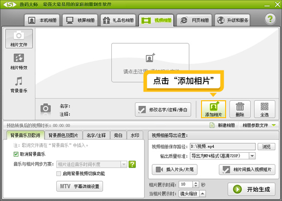 在数码大师中,选择导出为1080P全高清格式,点击“开始生成”,软件便能快速将照片合成视频相册。操作简单便捷,即使是新手也能轻松上手,短时间内就能拥有一个高清的照片视频。