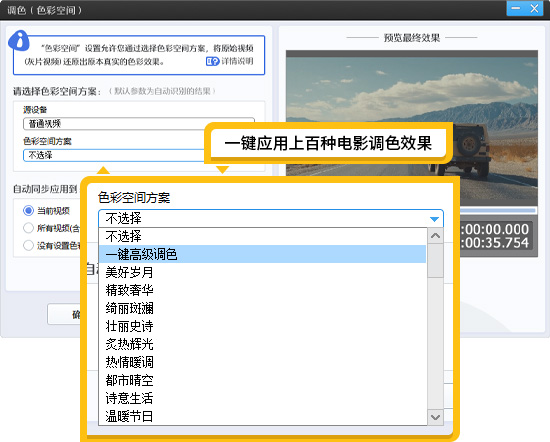 爱剪辑率先推出“AI专业电影调色”功能,打破传统滤镜局限,可对画面细节进行局部、精准的色彩调整,实现电影级艺术效果。它提供海量调色效果,涵盖日常场景与世界级影院大片风格,以往繁琐的调色操作,如今一键即可完成,轻松打造大片质感。