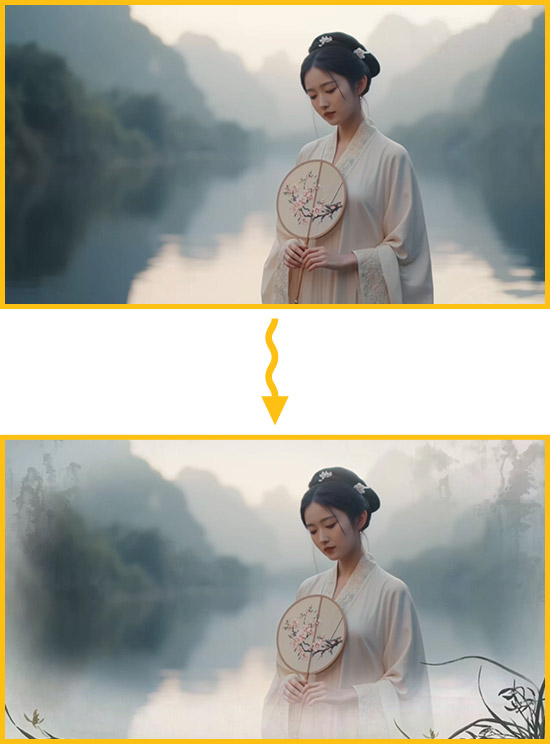 去古都、寺庙,比较古风古韵的地方,那可以应用“水墨晕染”,让古风氛围更加浓郁动感!